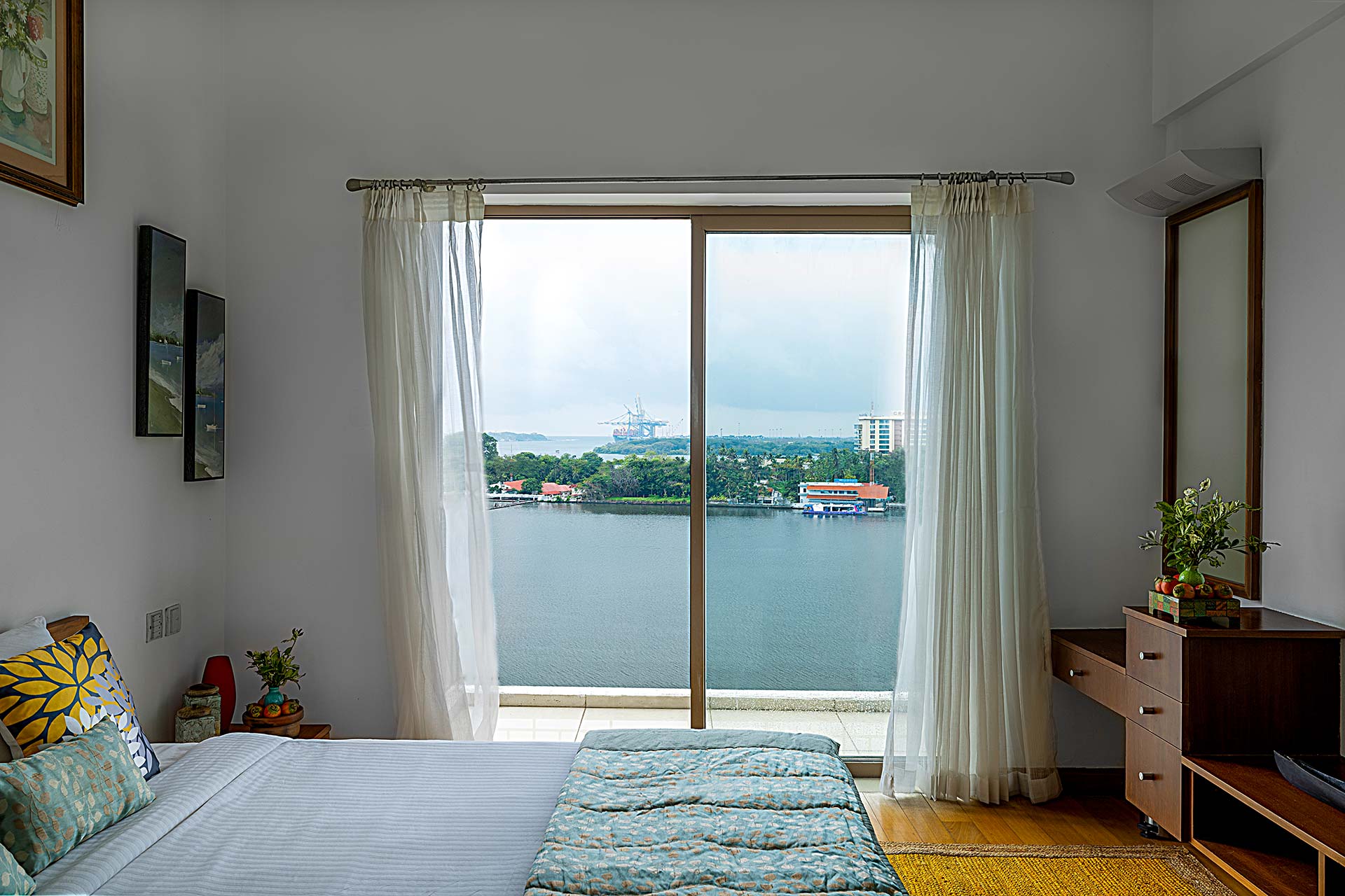 Marina Residence Kochi offers a premium living experience in the heart of Marine Drive, Kochi. Situated on the 9th floor, this expansive 3500 sq. ft. 3BHK apartment boasts breathtaking views of the Arabian Sea, the serene backwaters, and the Lulu Bolgatty International Convention Centre. Designed for those who appreciate luxury, the residence features plush interiors, centrally air-conditioned spaces, and four spacious balconies that provide the perfect vantage point for stunning sunsets.