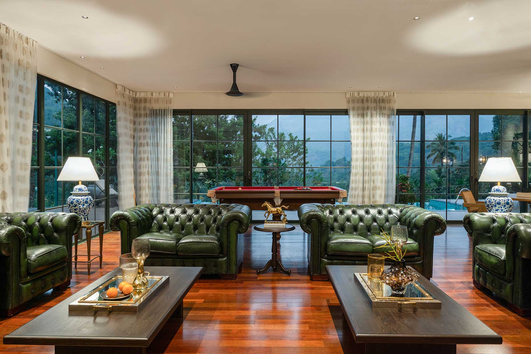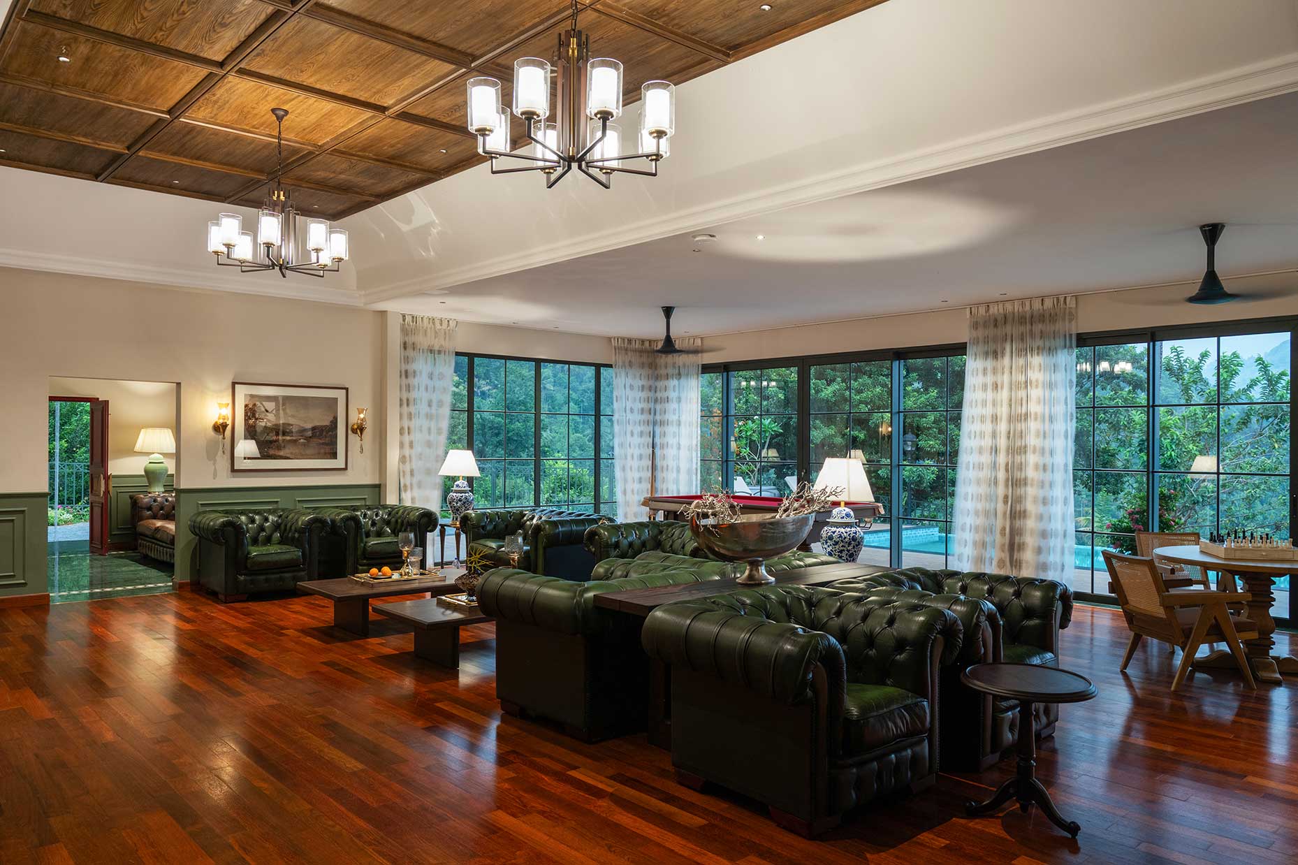 The timeless charm of classic tea or spice estates, with elegantly appointed bungalows nestled in lush greenery, providing a blend of historical allure and modern comforts, perfect for relaxation and exploration.