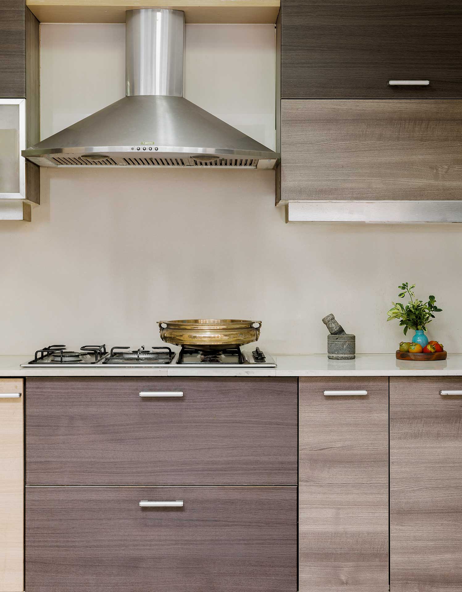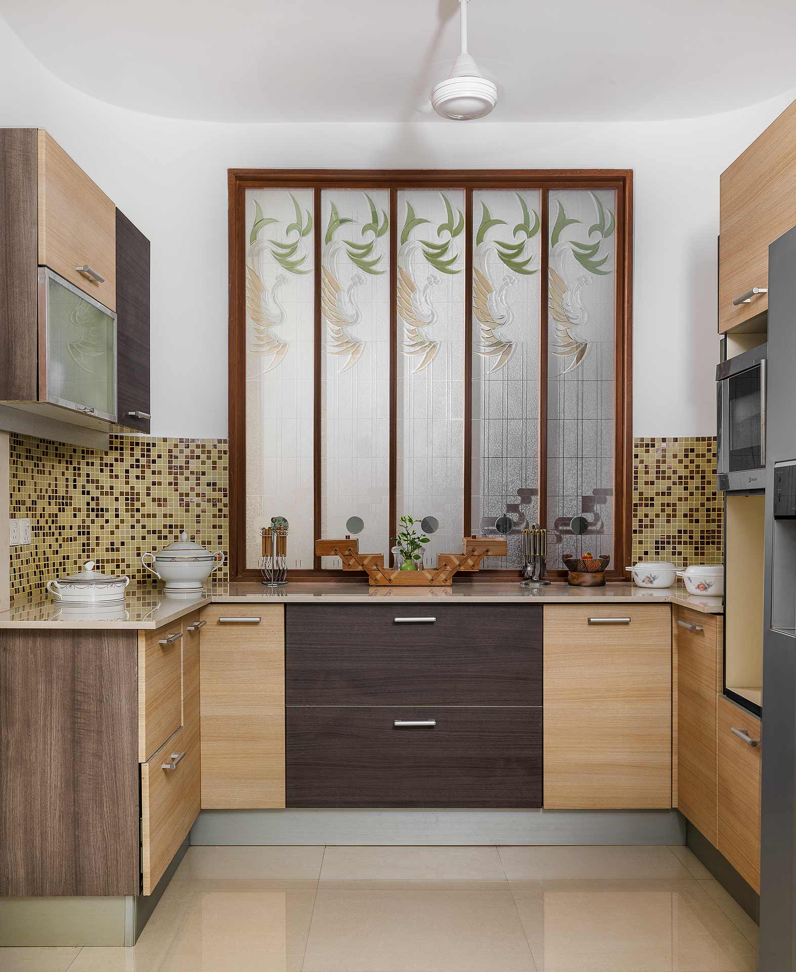 The modular kitchen is equipped with everything needed for self-cooking, featuring modern interiors and appliances that make meal preparation convenient and enjoyable.