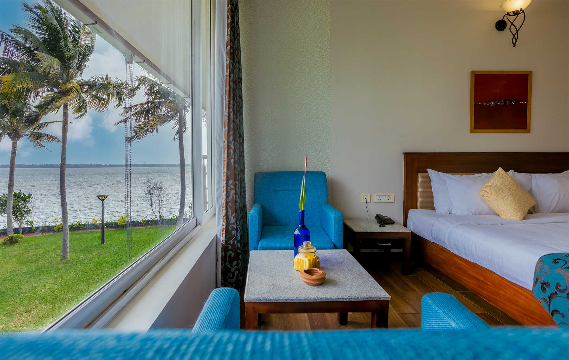 Waters Edge Kochi offers six luxurious deluxe rooms, all equipped with modern facilities. Choose from our lower deck rooms for a serene lake view or our upper deck rooms for a panoramic vista of the stunning Vembanad Lake.